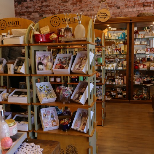 The Amati store is a welcoming space in Gramado where the brand’s own products, handcrafted in the city, showcase its full olfactory and cosmetic identity. At the entrance, the Perfume Fountain, which recently even froze during the coldest days, greets visitors with charm and curiosity. Inside the store, you’ll find signature perfumes such as Joaquina, Elisabeth, and Major, along with aroma diffusers and refills, liquid and bar soaps, body lotions, oils, bath salts, and exfoliants. Amati also offers a facial line, men’s products, and aromatherapy options — always preserving its artisanal essence and the inspiration drawn from the stories and scents of Gramado.