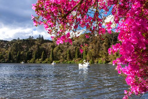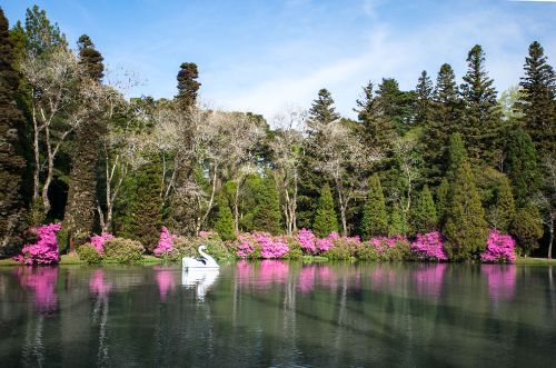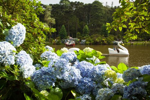 Se estás por aqui no verão, emoldure teu olhar - e quem sabe tuas fotos - com as hortênsias, cuja cor varia conforme o PH do solo. Na primavera, as azaleias colorem a paisagem.